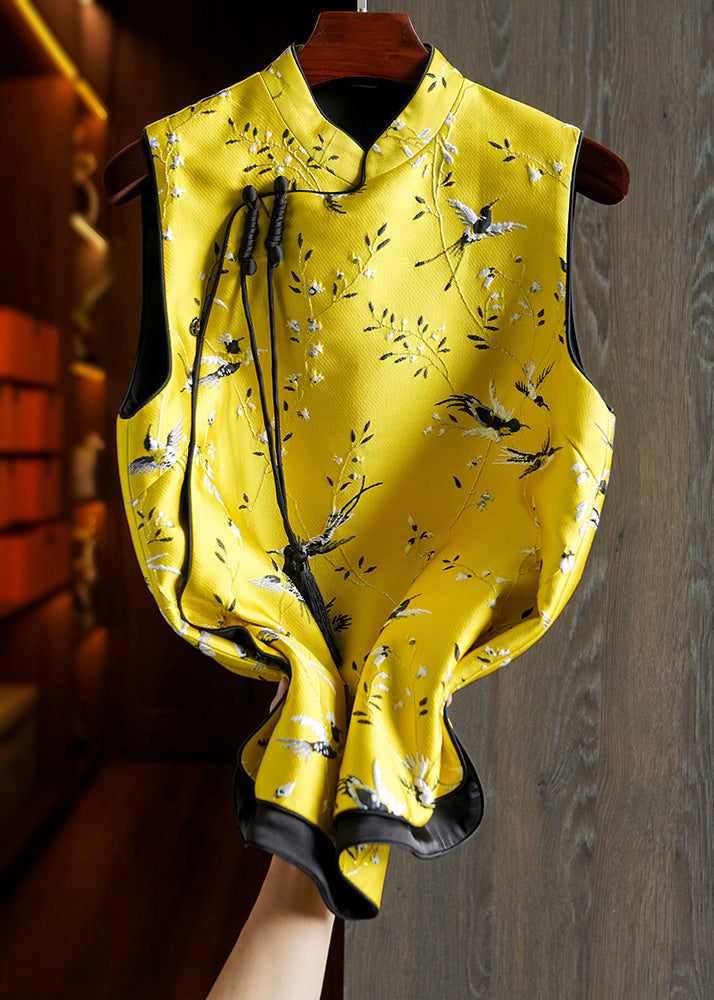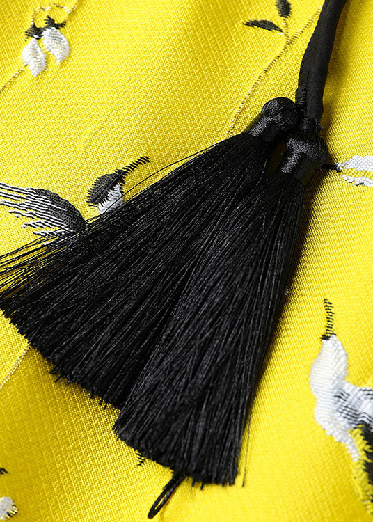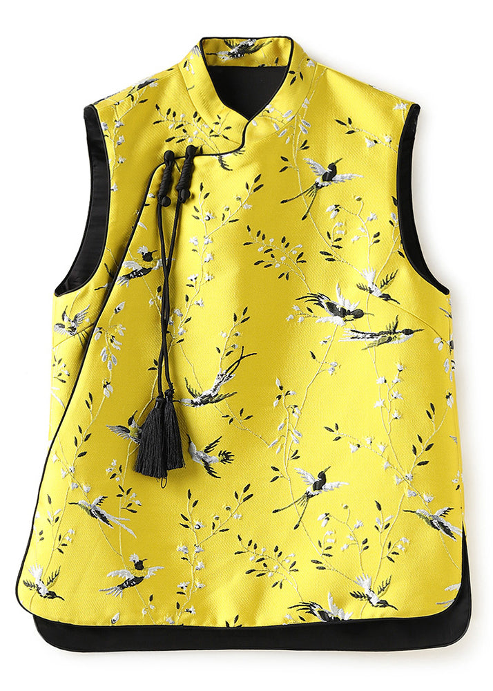 Chinese Style Yellow Tasseled Embroideried Patchwork Silk Vest Sleeveless