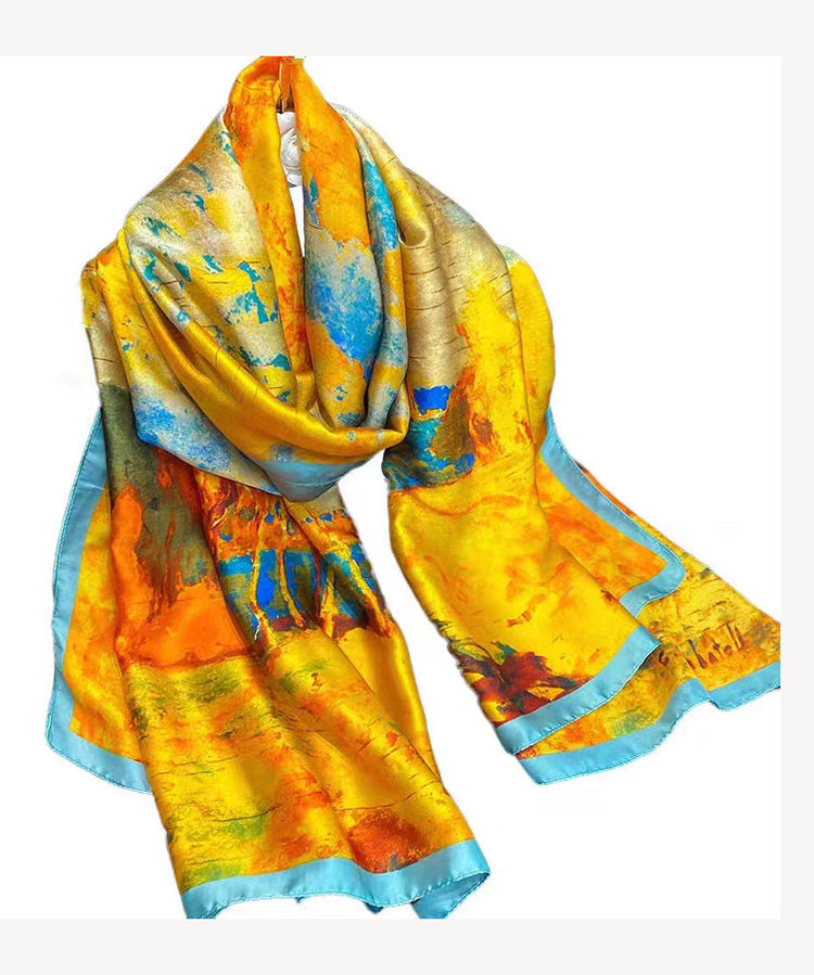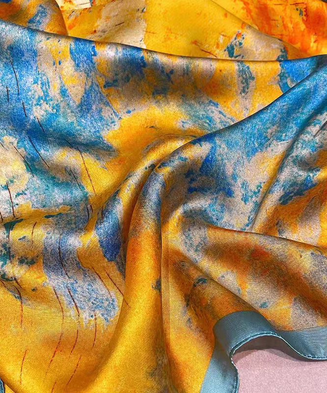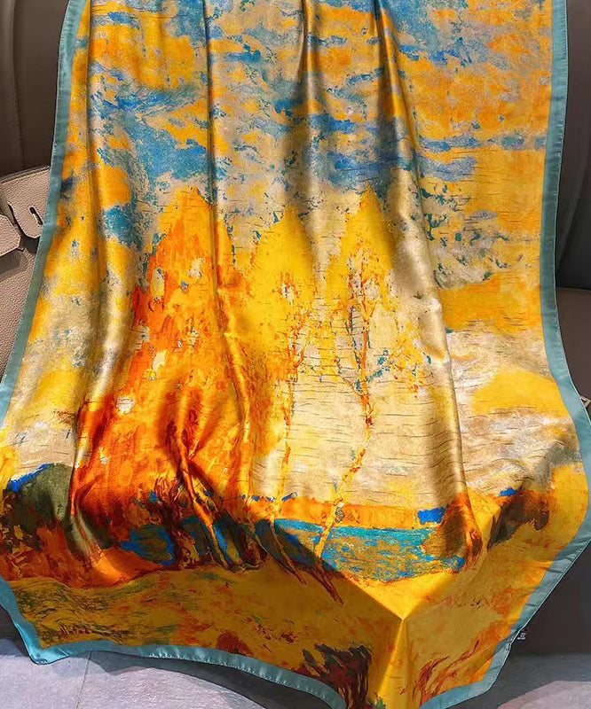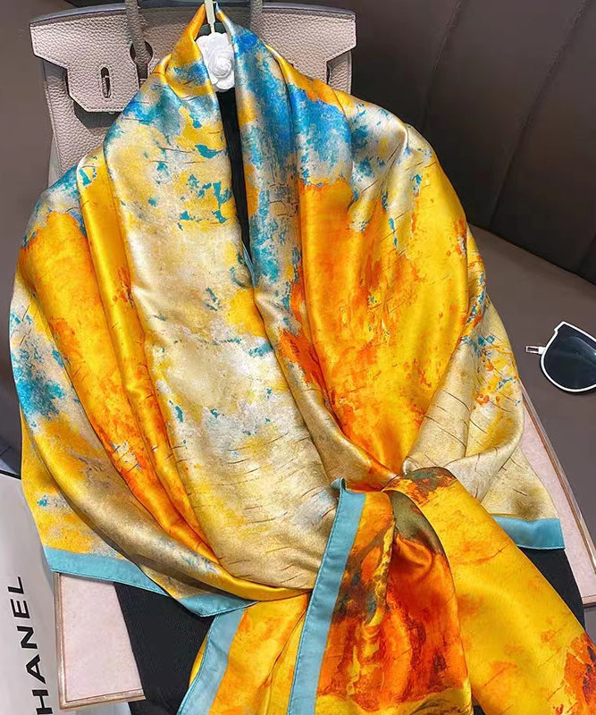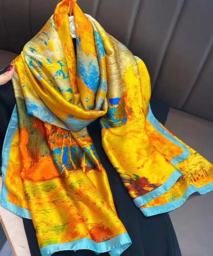 Classy Yellow Paintings Style Versatile Silk Scarf