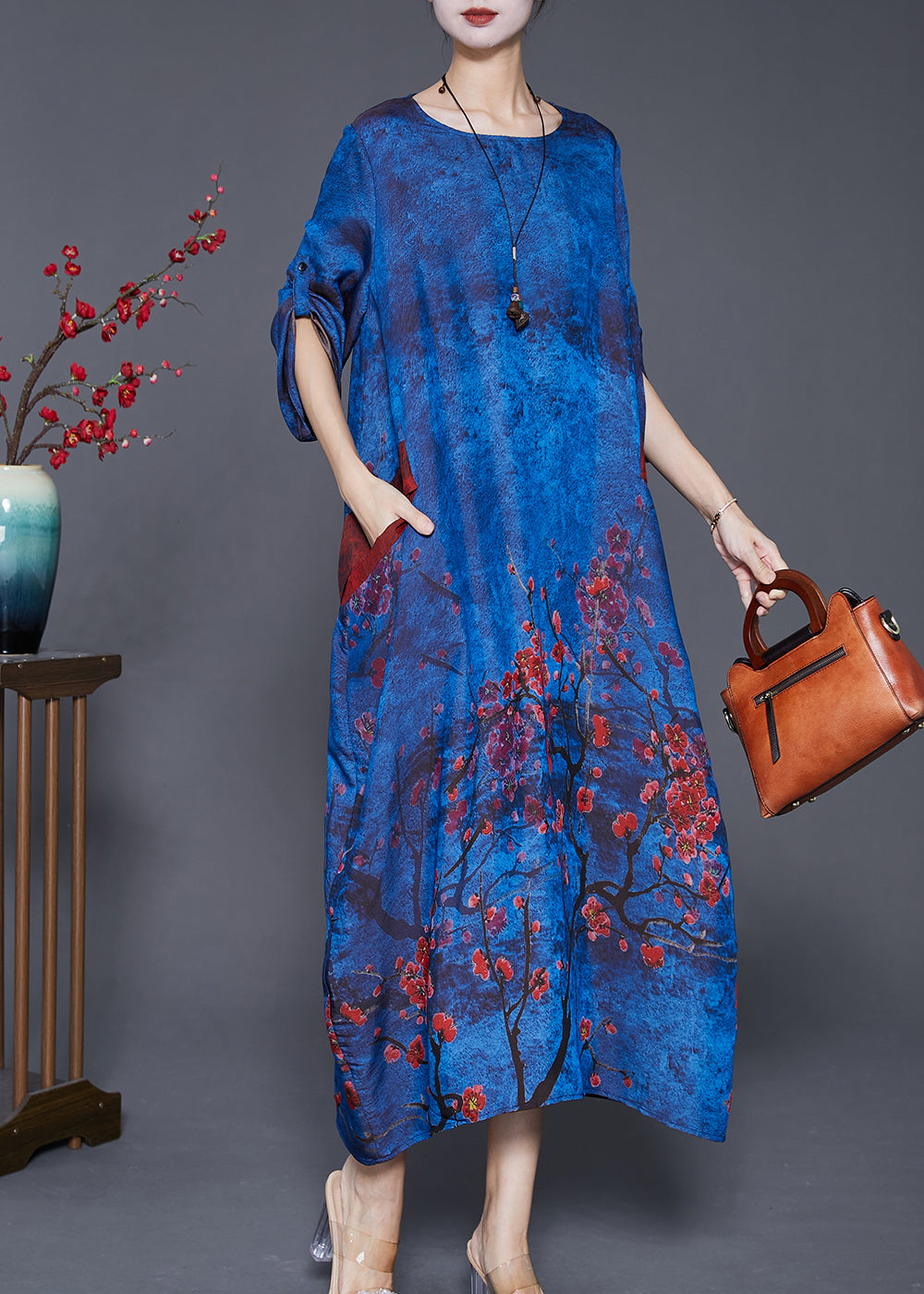DIY Blue Oversized Tie Dye Silk Maxi Dresses Fall