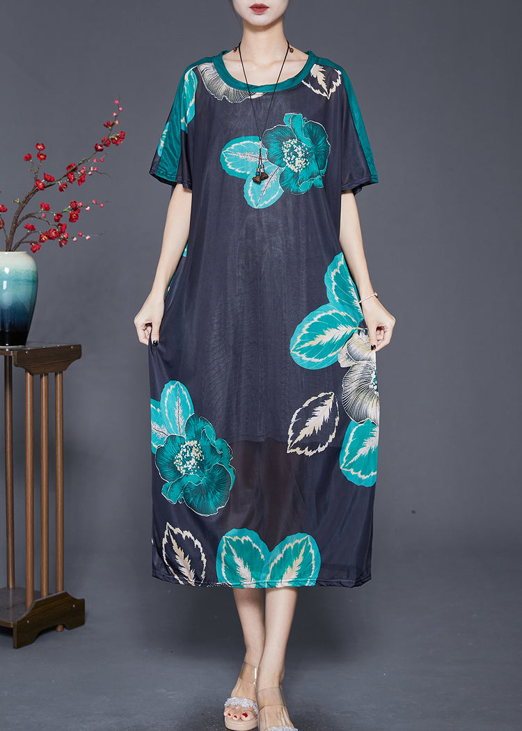 Elegant Black Oversized Print Silk Maxi Dresses Summer