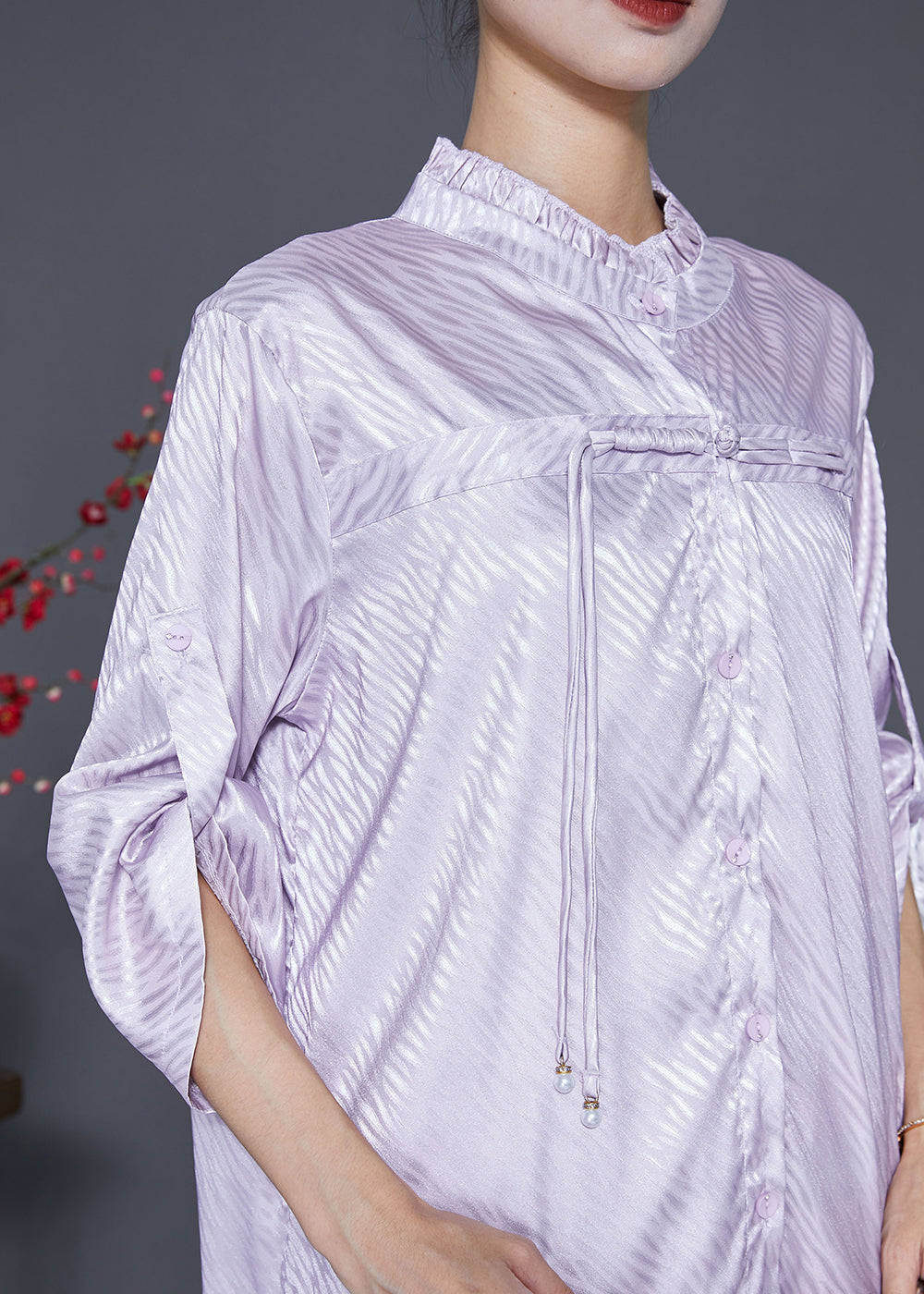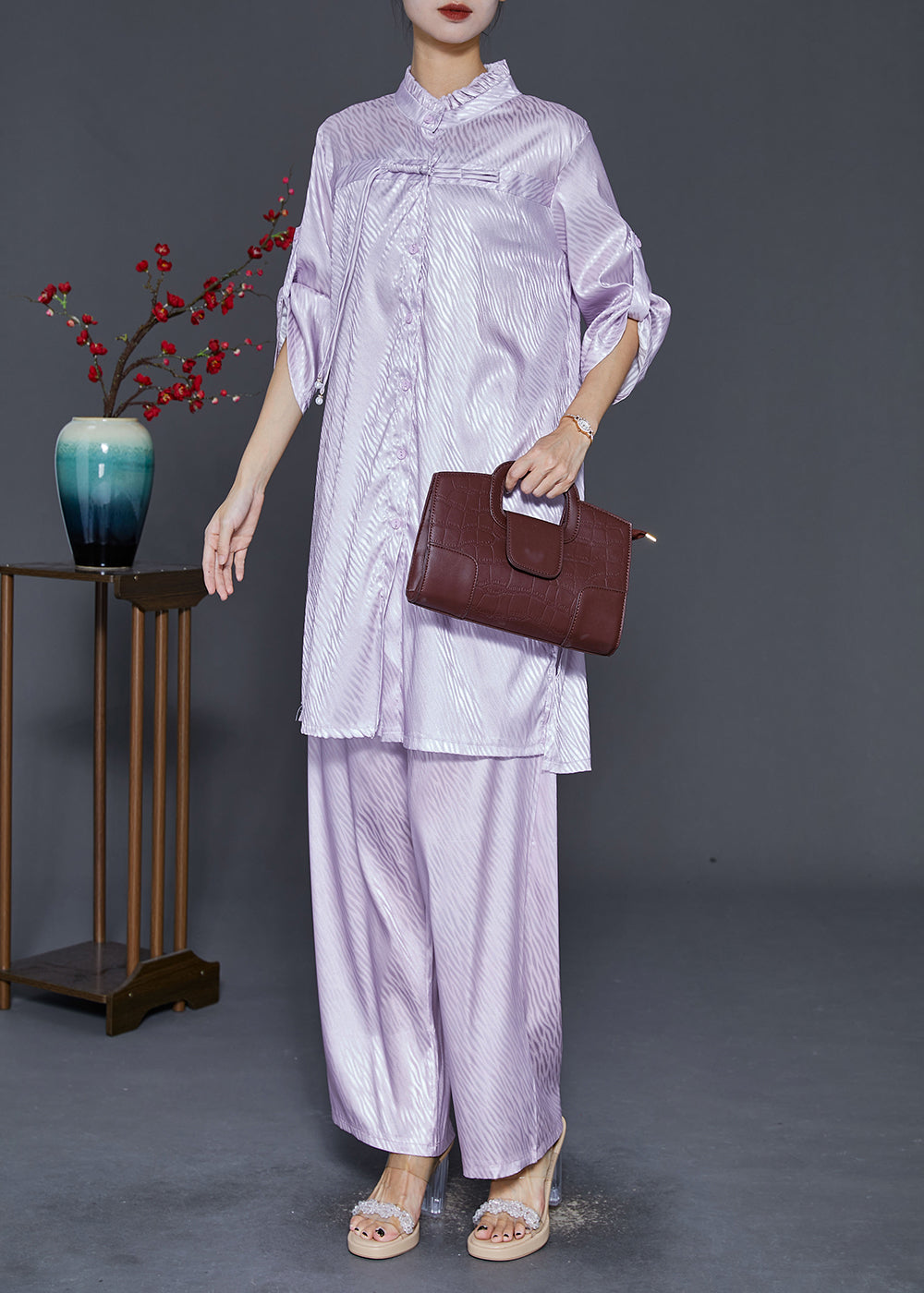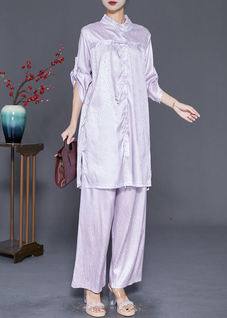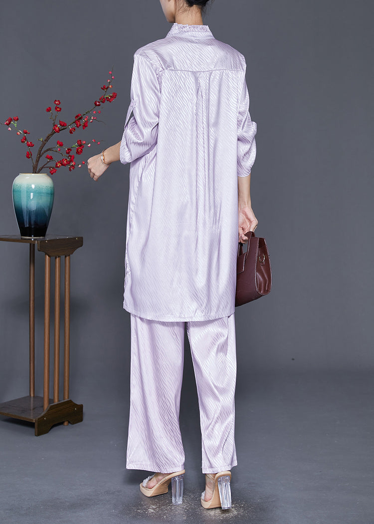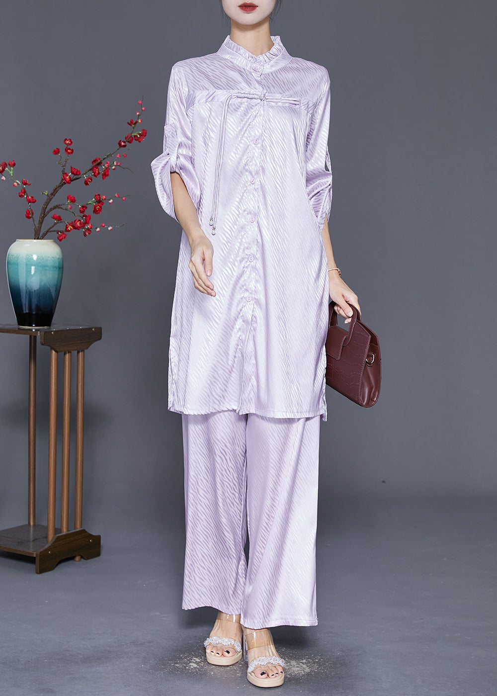 Elegant Light Purple Ruffled Tasseled Silk Two Pieces Set Fall