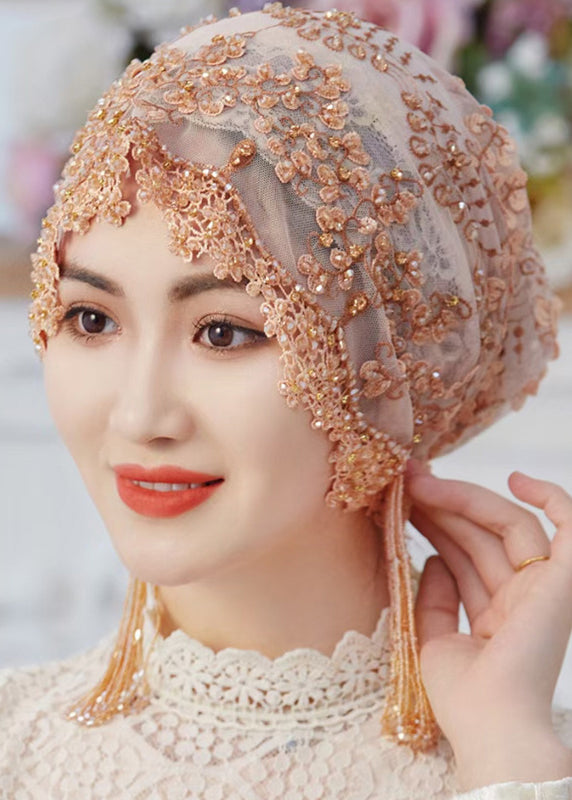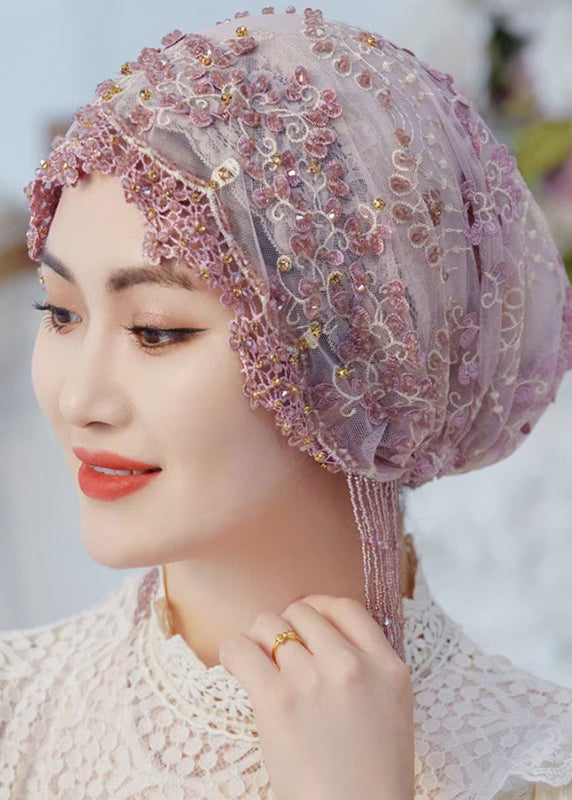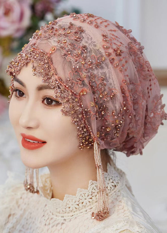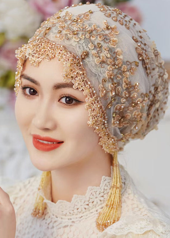 Ethnic Style White Embroideried Tasseled Silk Bonnie Hat