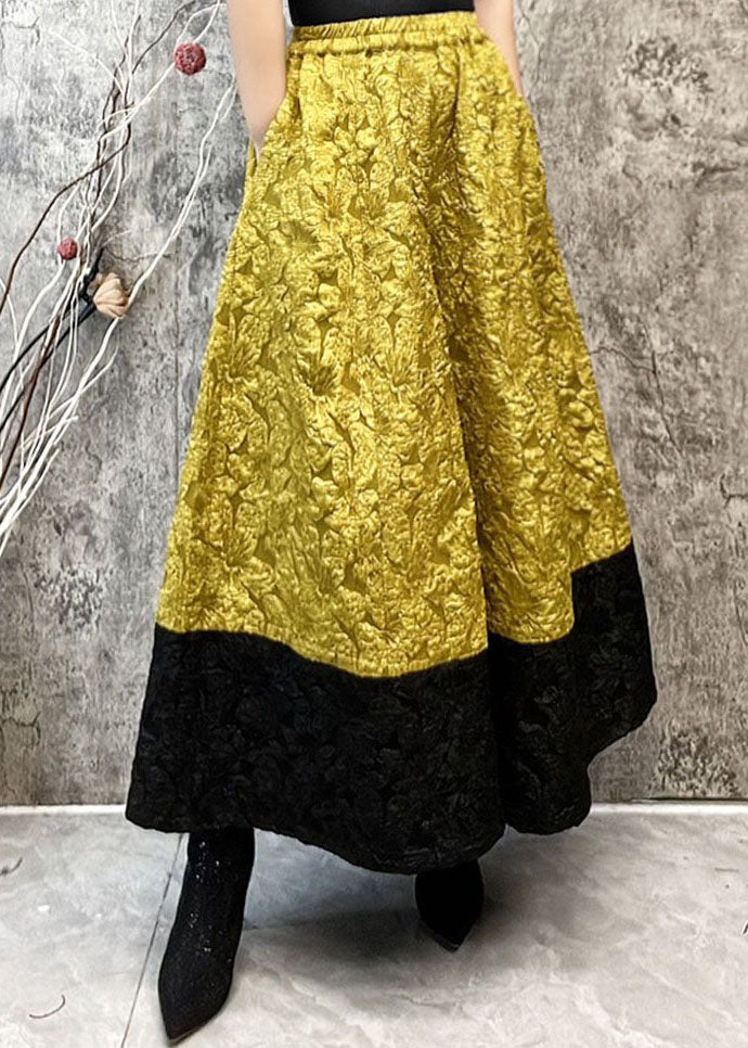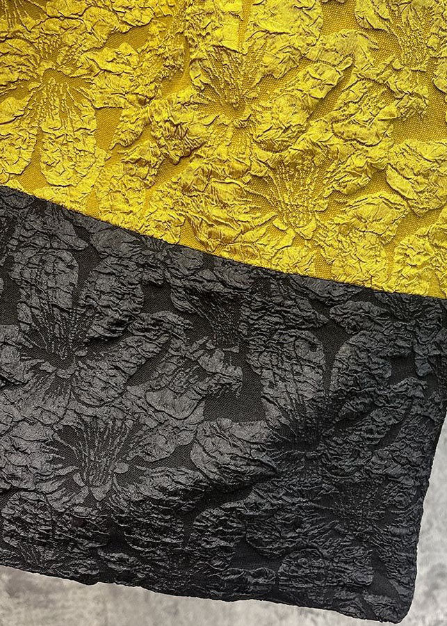 Fashion Yellow Pockets Jacquard Patchwork Silk Wide Leg Pants Spring