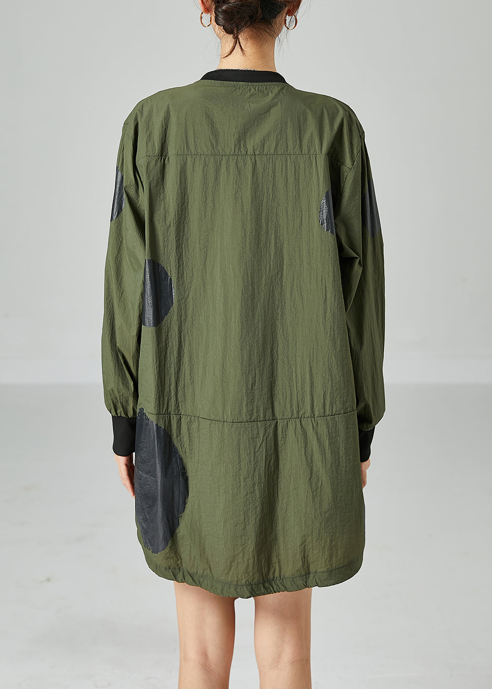 French Army Green Oversized Patchwork Drawstring Silk Coats Spring