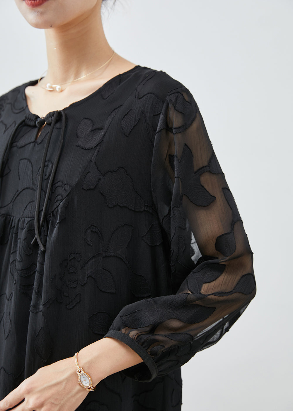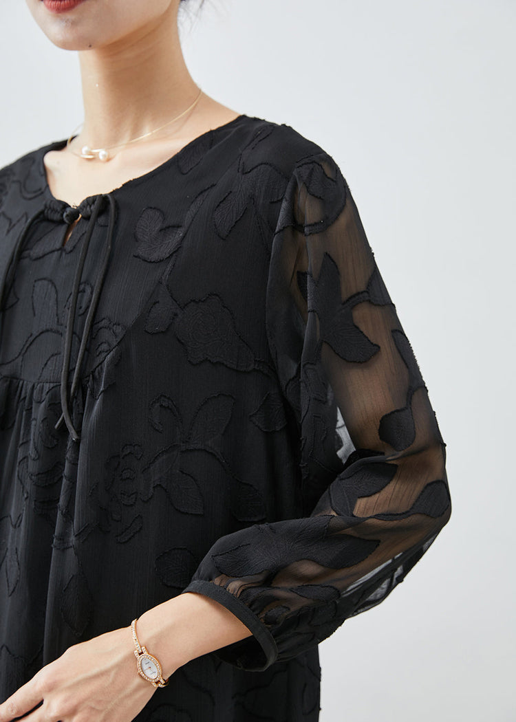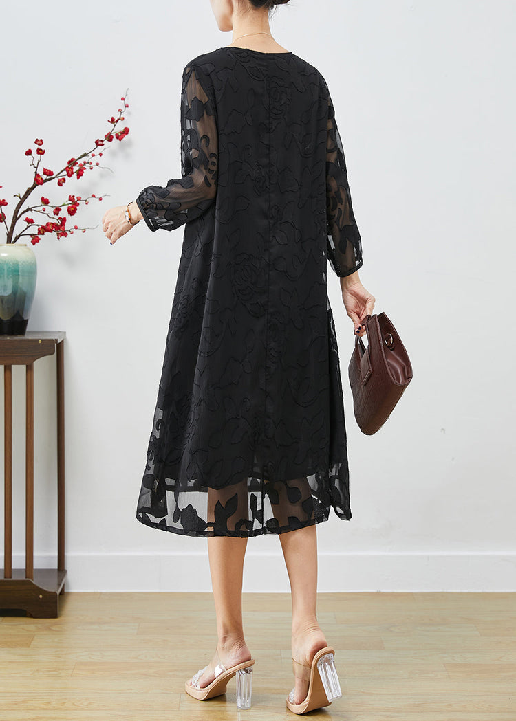 French Black Chinese Button Hollow Out Silk Dresses Fall