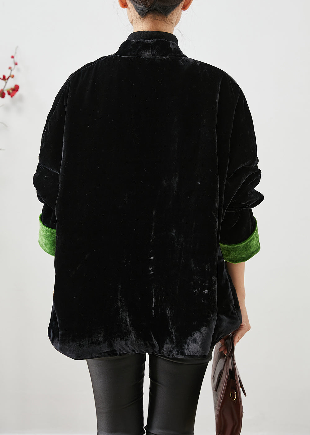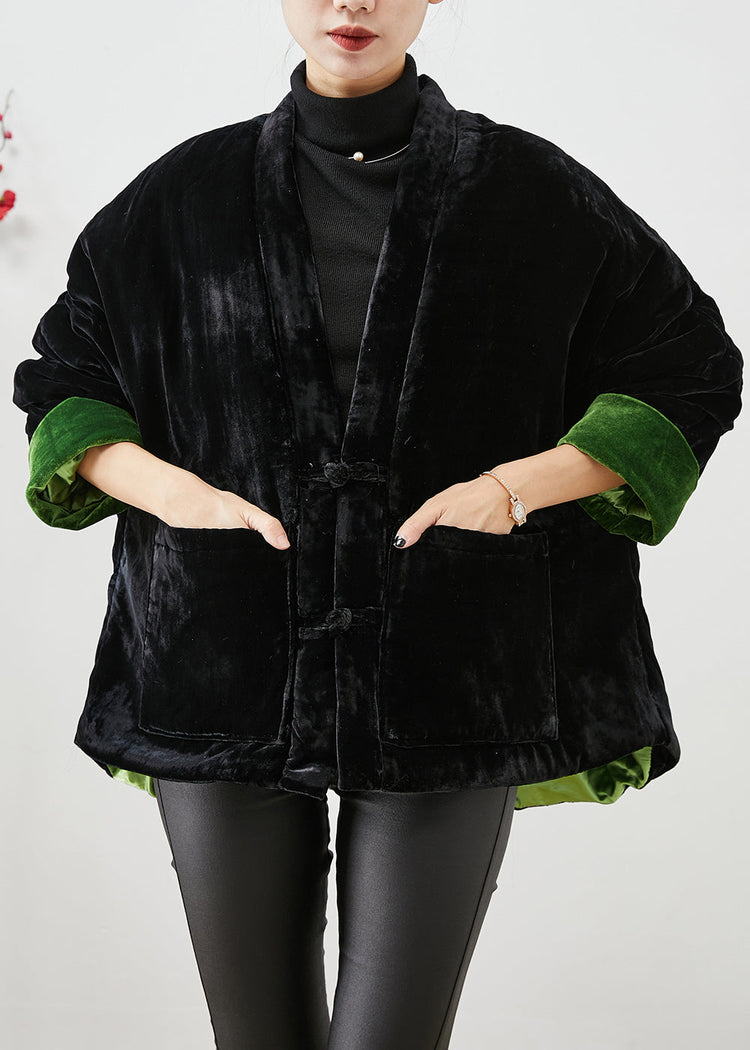 Handmade Black Chinese Button Thick Cotton Filled Silk Velour Coats Winter