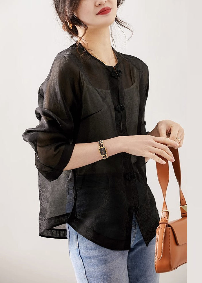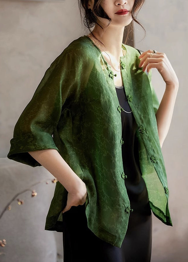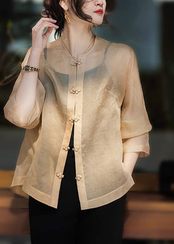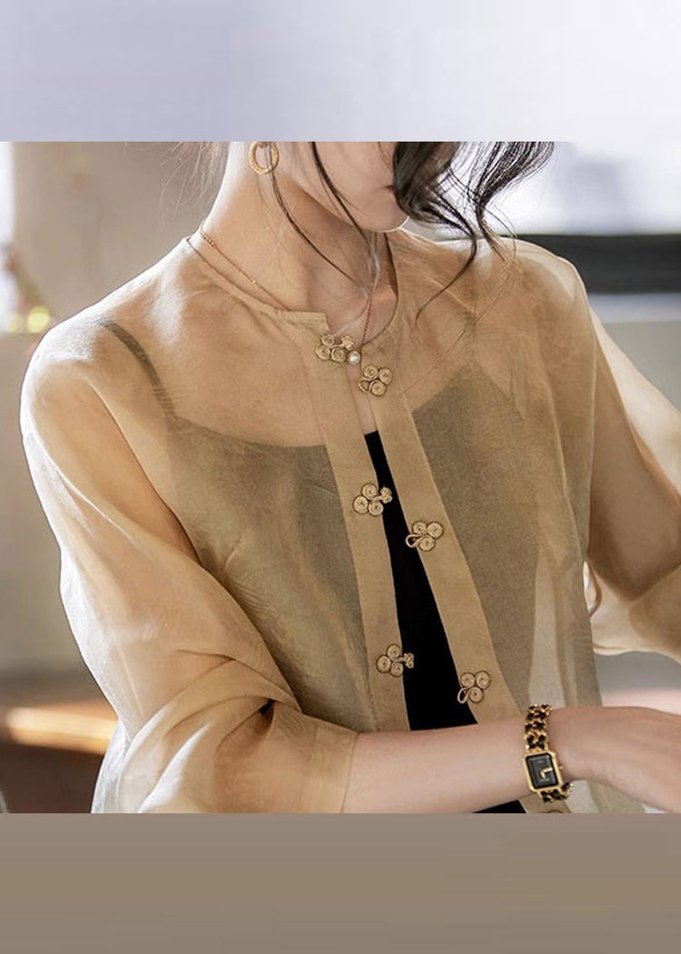 Jacquard Apricot O-Neck Patchwork Silk UPF 50+ Coats Long Sleeve
