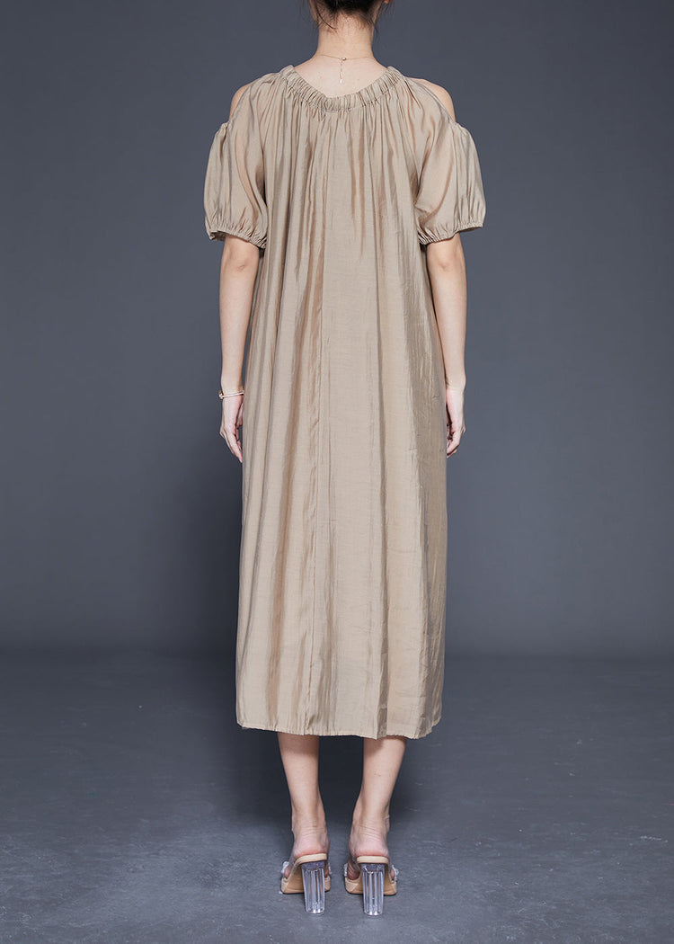 Khaki Cold Shoulder Silk Party Dress Oversized Summer