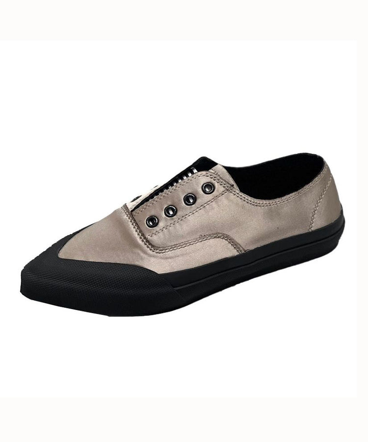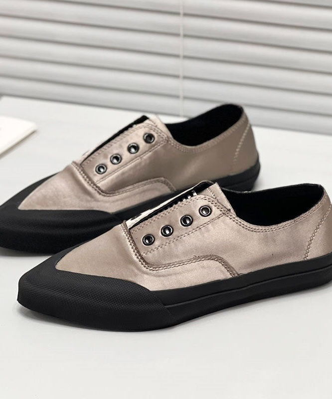 Khaki Silk Blended Boutique Splicing Pointed Toe Flat Shoes For Women