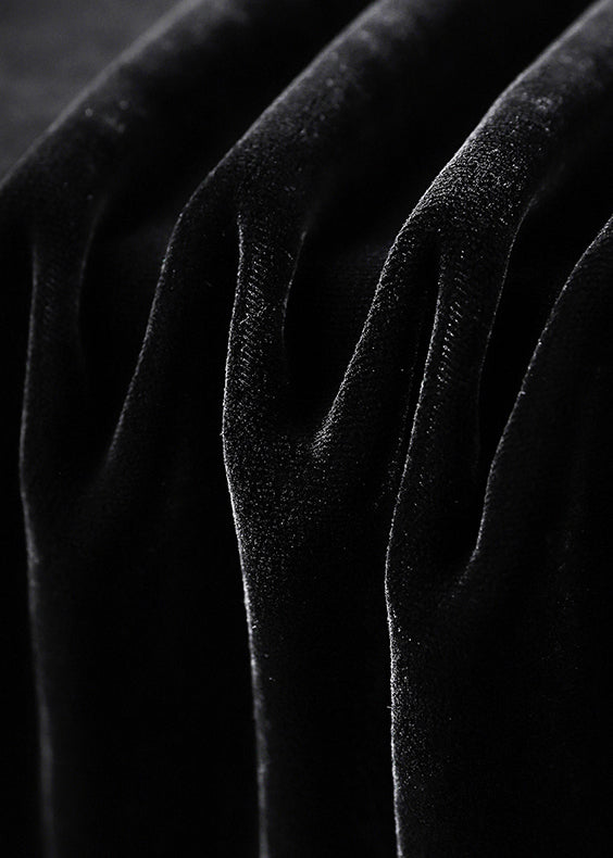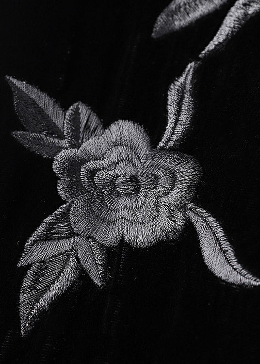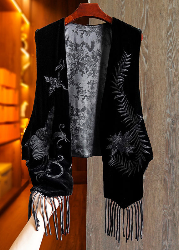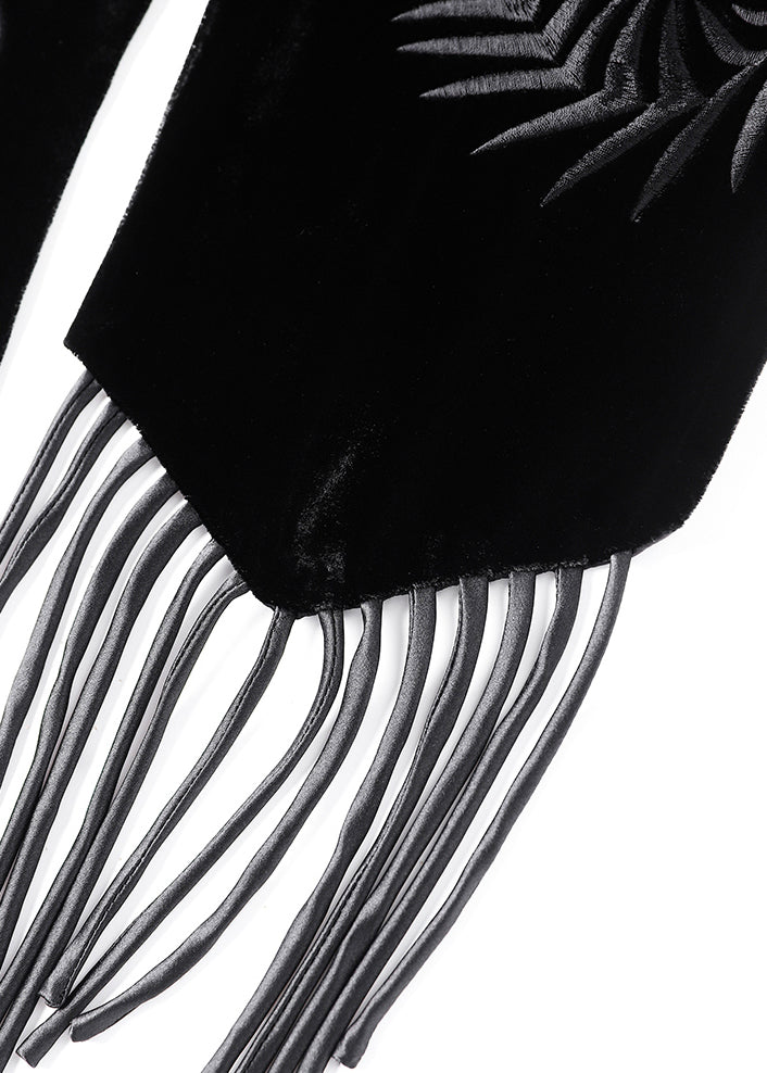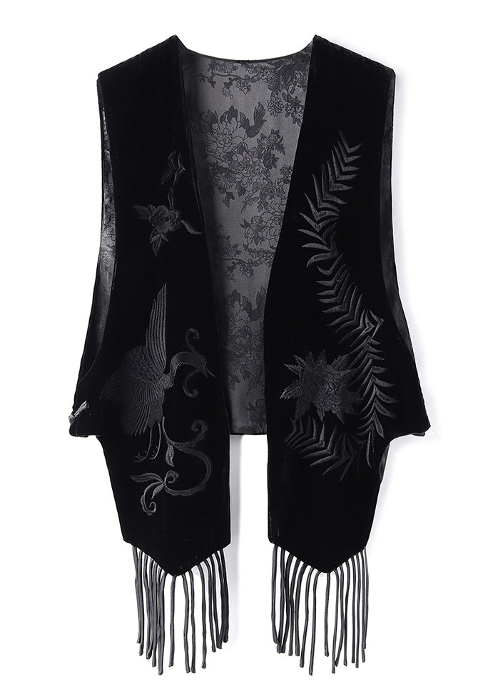 Original Design Black Embroideried Tasseled Silk Velour Vest Sleeveless
