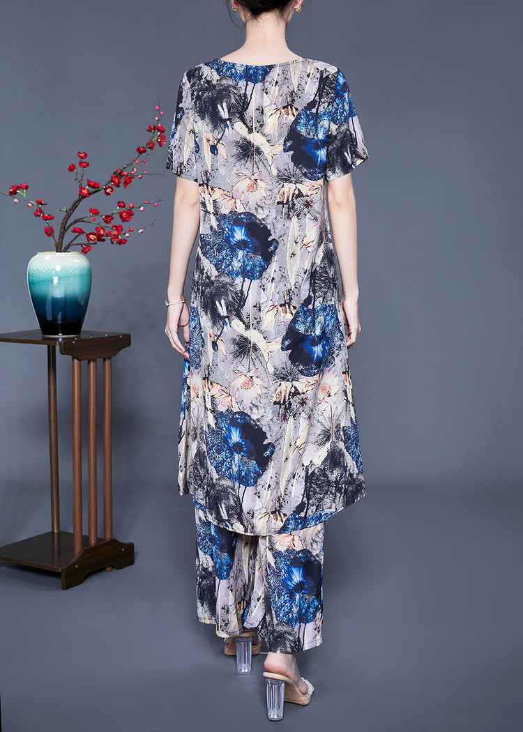 Plus Size Asymmetrical Design Tie Dye Silk Two Pieces Set Summer