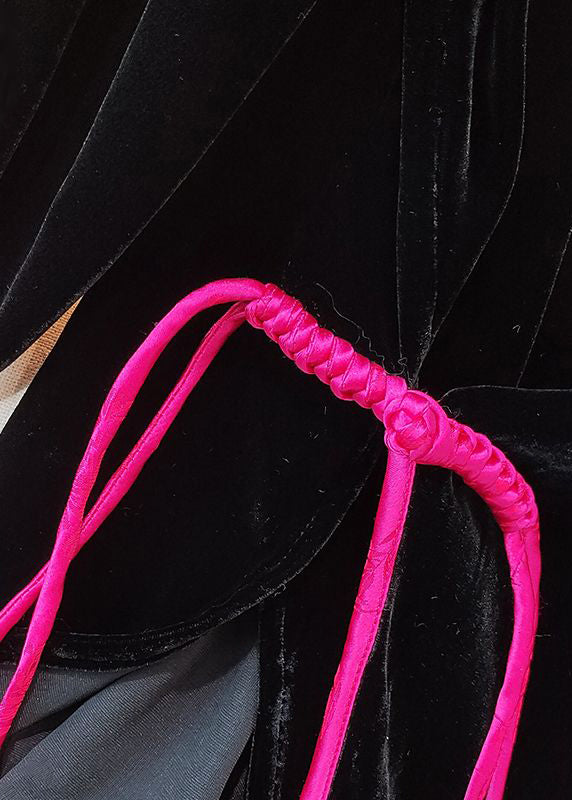Plus Size Black O-Neck Patchwork Side Open Silk Velour Shirts Long Sleeve