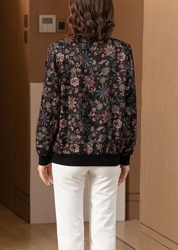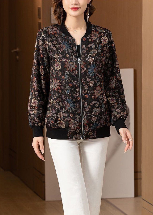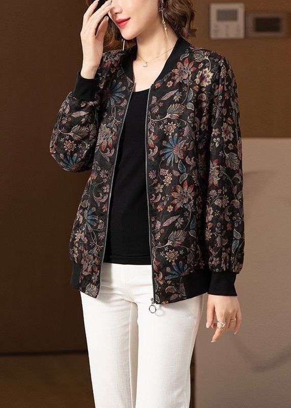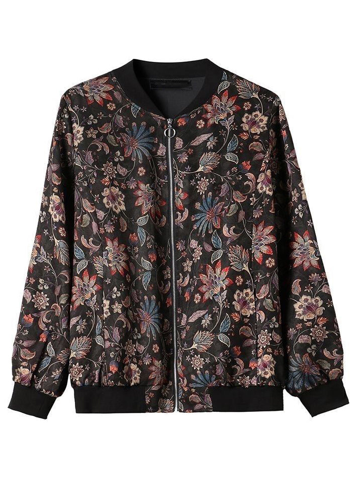 Plus Size Black O Neck Zip Up Pockets Silk Coats Long Sleeve