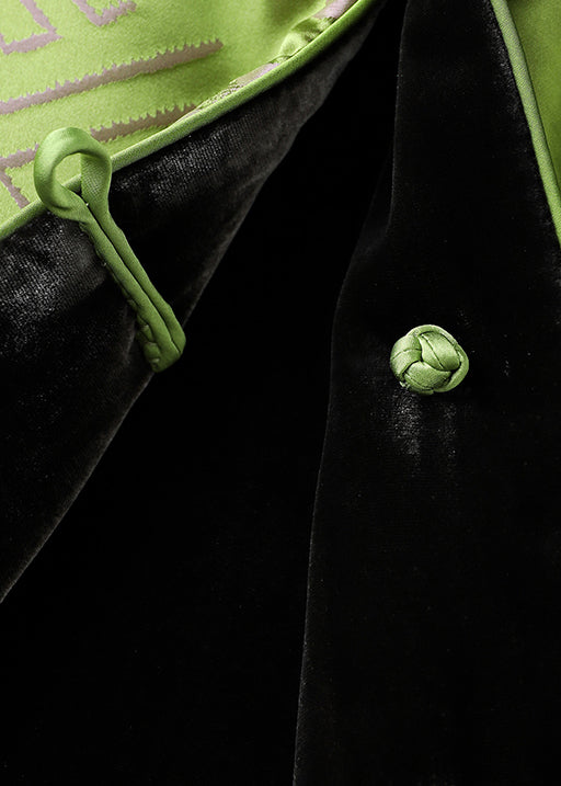 Plus Size Green Button Print Pockets Silk Parka Long Sleeve