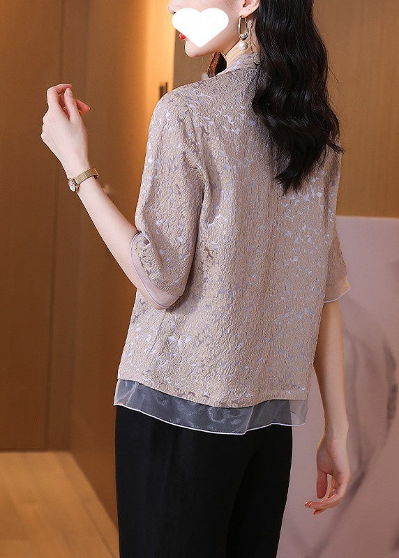 Retro Purple Stand Collar Tasseled Jacquard Patchwork Silk Shirt Fall