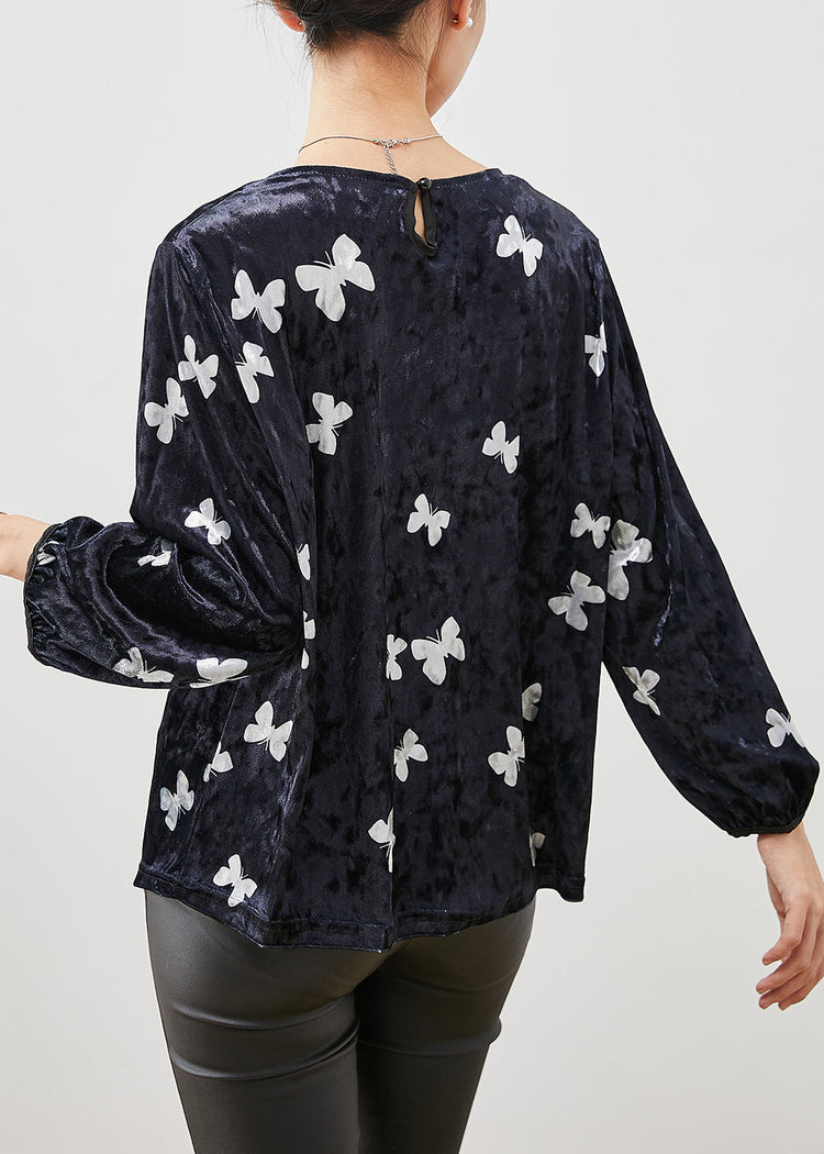 Simple Black Oversized Butterfly Silk Velour Shirt Spring