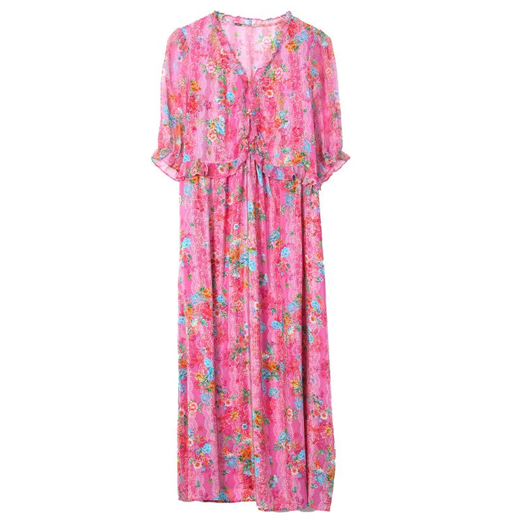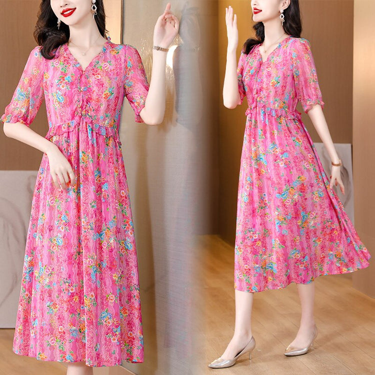 Summer Magnanimous Mulberry Silk V-Neck Dress