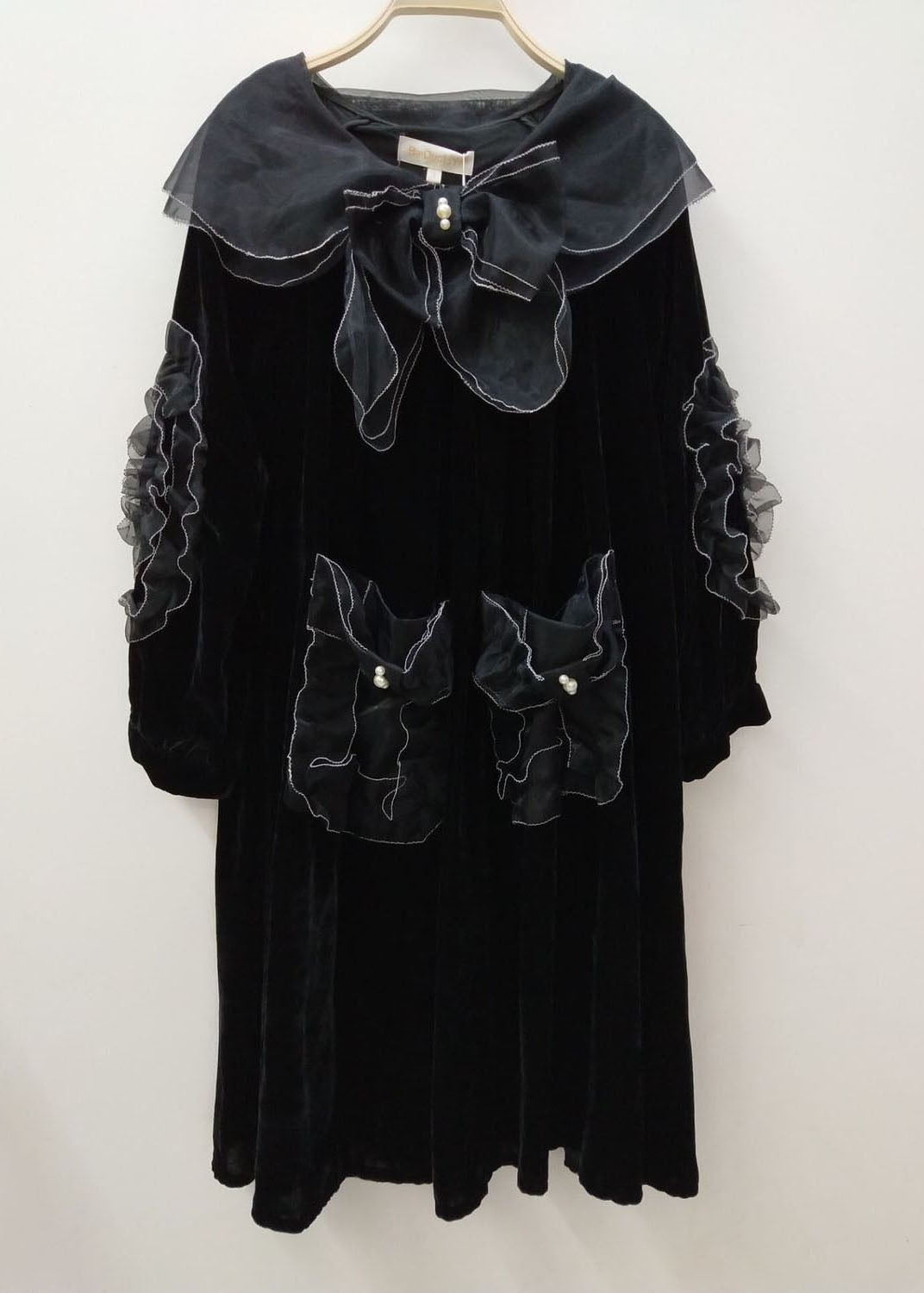 Unique Black Peter Pan Collar Organza Patchwork Silk Velour A Line Dresses Spring