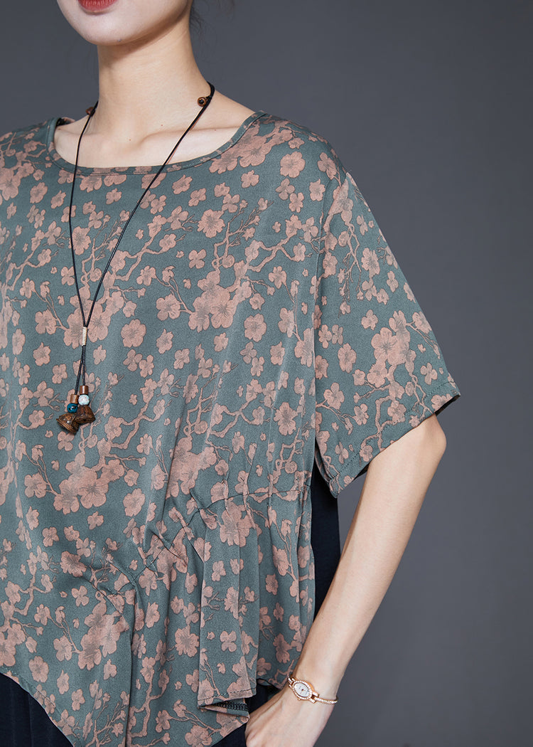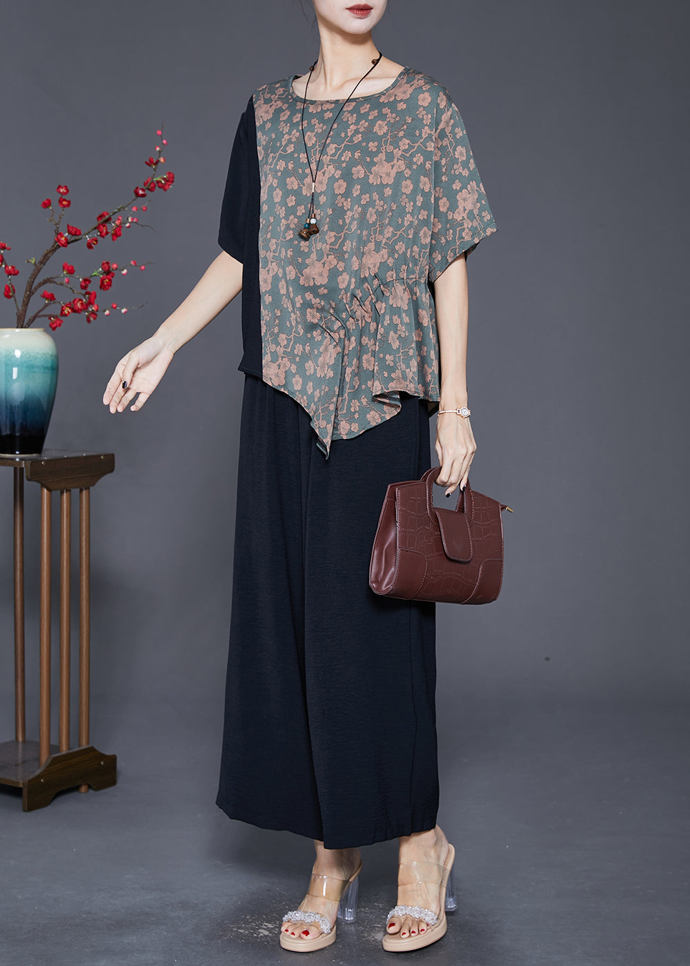Women Asymmetrical Patchwork Print Silk Two-Piece Set Fall