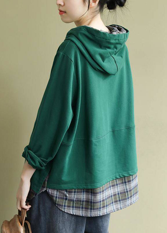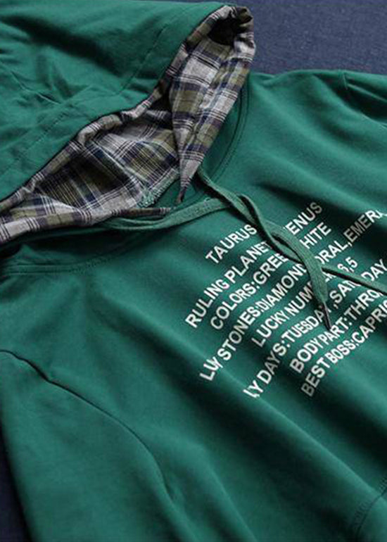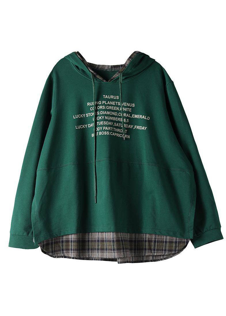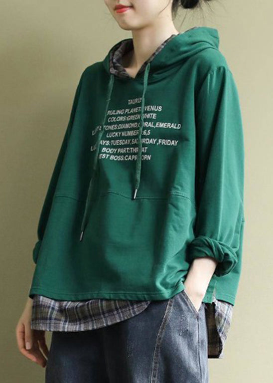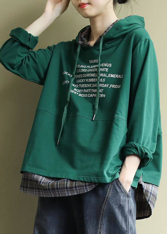 Classy Green Hooded drawstring Graphic Fake Two Piece Sweatshirts Top Spring