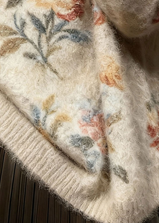 Original Design O Neck Thick Floral Knit Pullover Winter