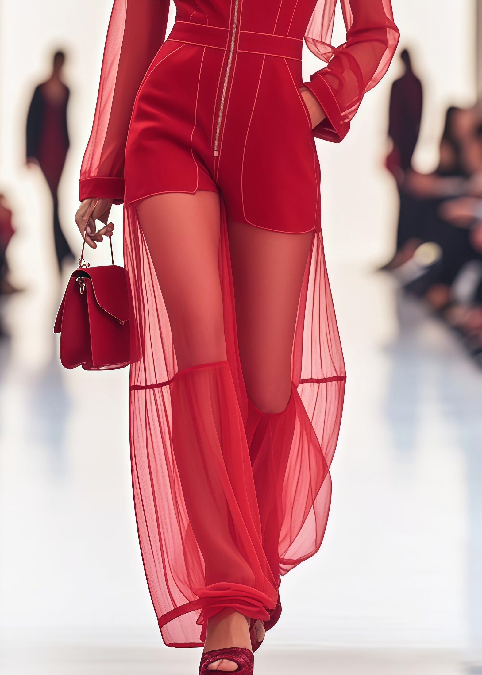 Style Red Zip Up Patchwork Tulle Overalls Jumpsuit Summer
