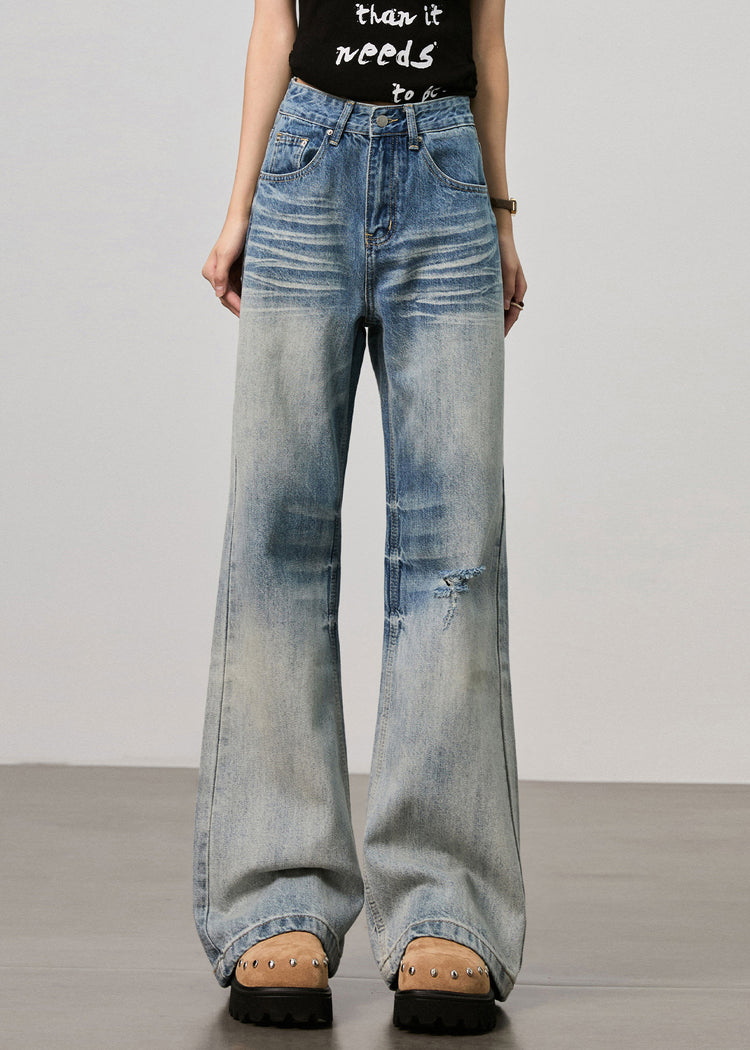 Boutique Blue Pockets High Waist Denim Ripped Pants Fall