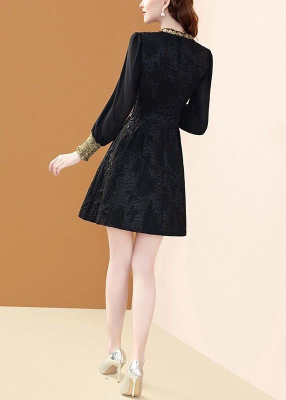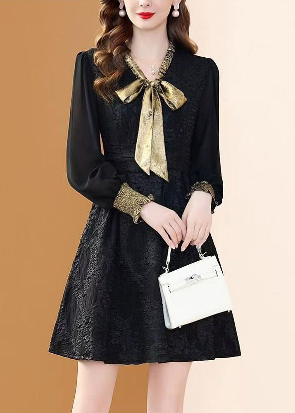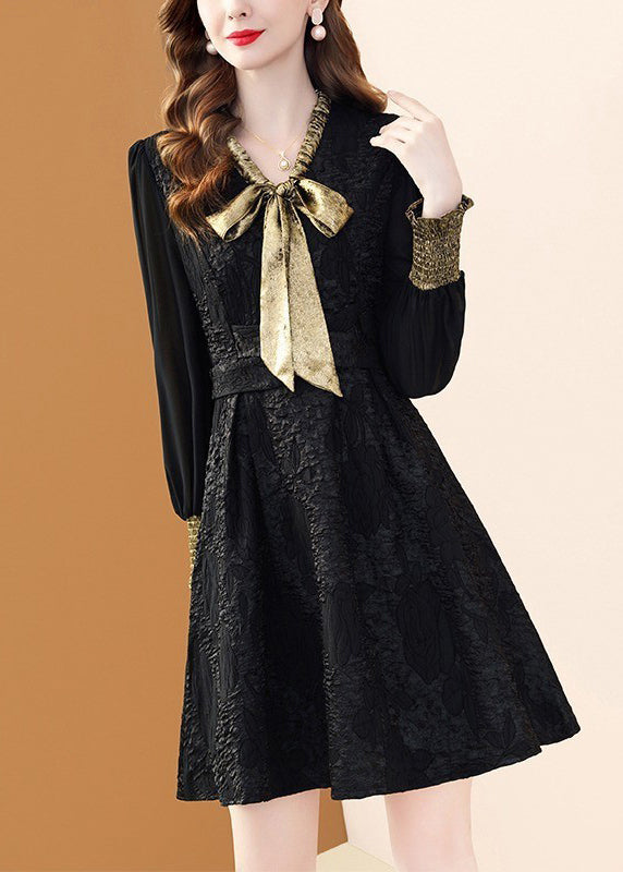 Elegant Black Bow Pockets Patchwork Dresses Winter