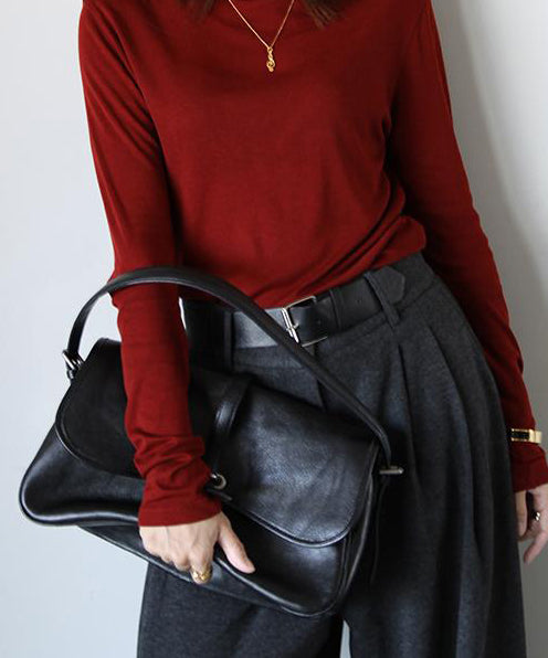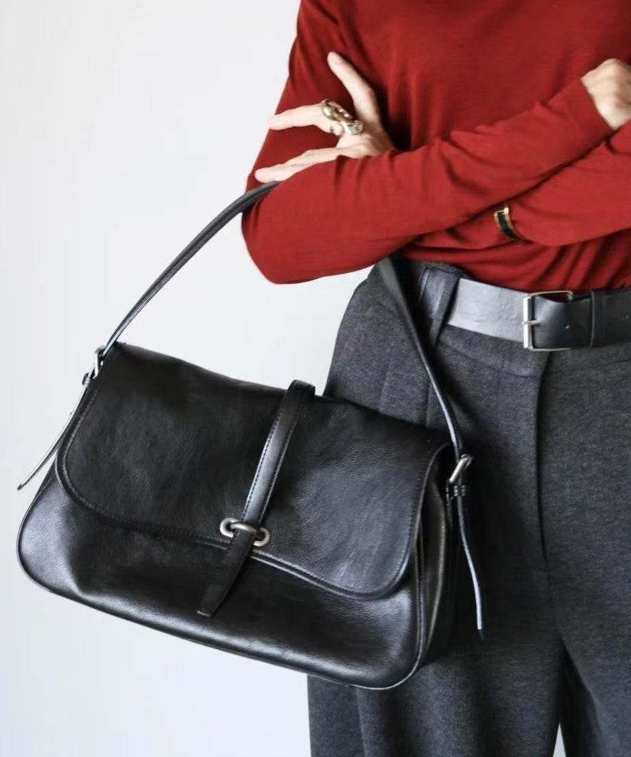 Modern Black Solid Durable Leather Womens Hobo Bag