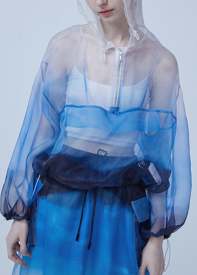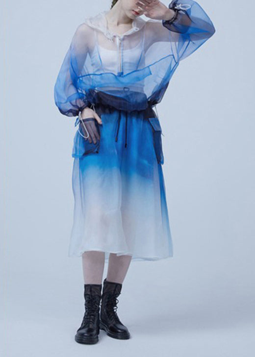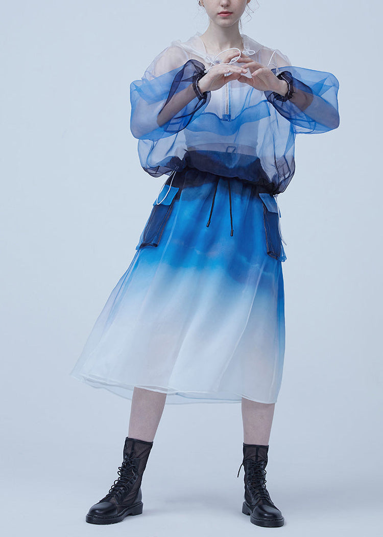 Summer New Gradient Color Silk Sunscreen Top And Skirt Two Piece Set